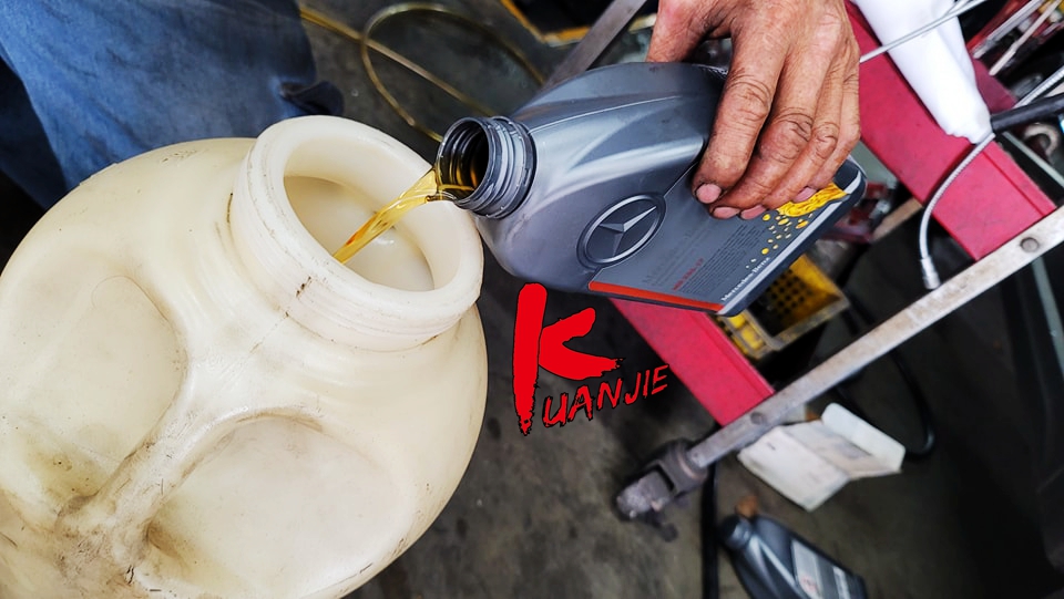 BENZ GLC220 M274 X254 車主為了讓愛有更好的駕馭感受,定期來保養賓士9速變速箱油更換服務,期間發現M274引擎漏油,一併安排處理讓愛車行駛更安心。