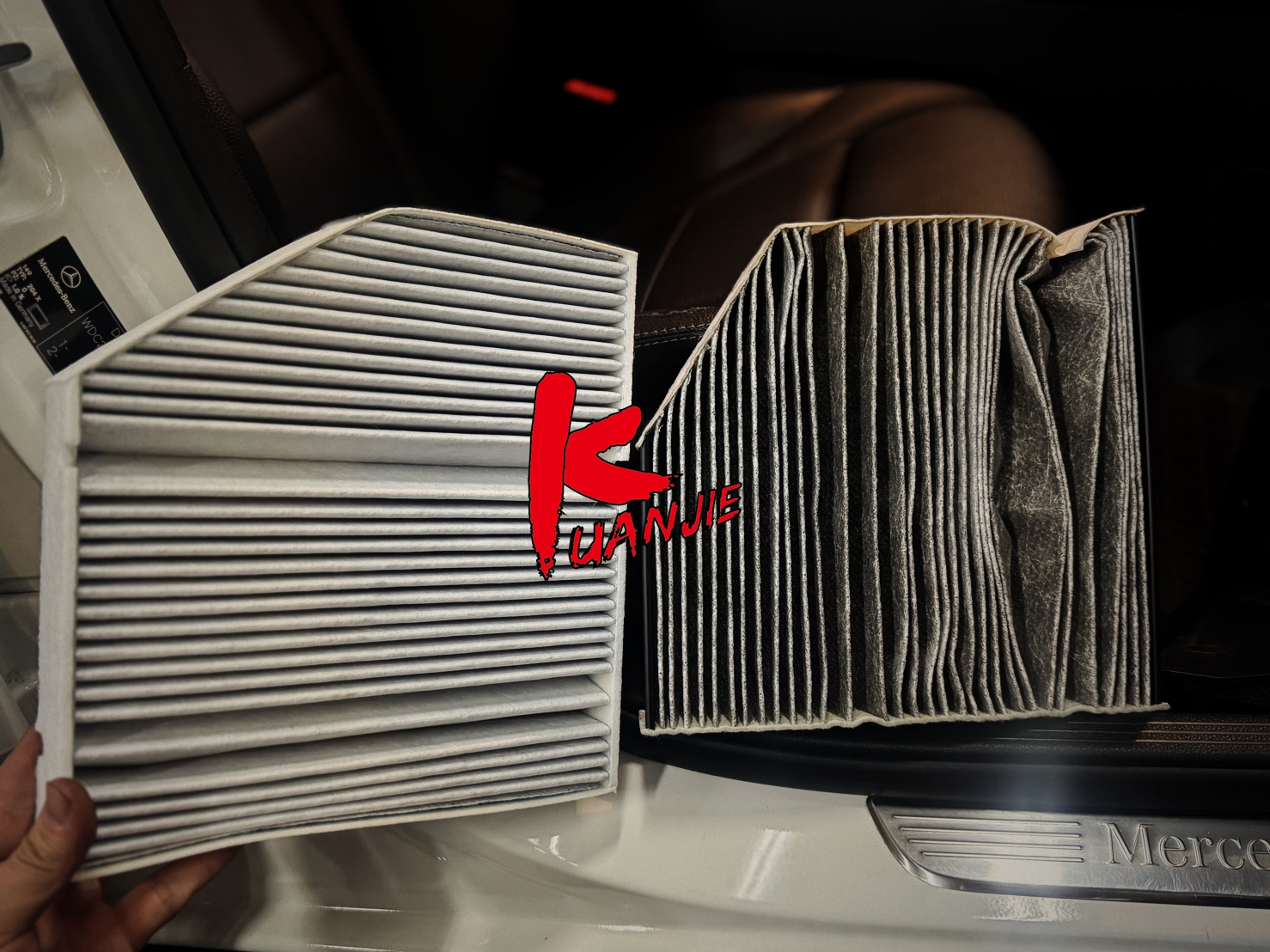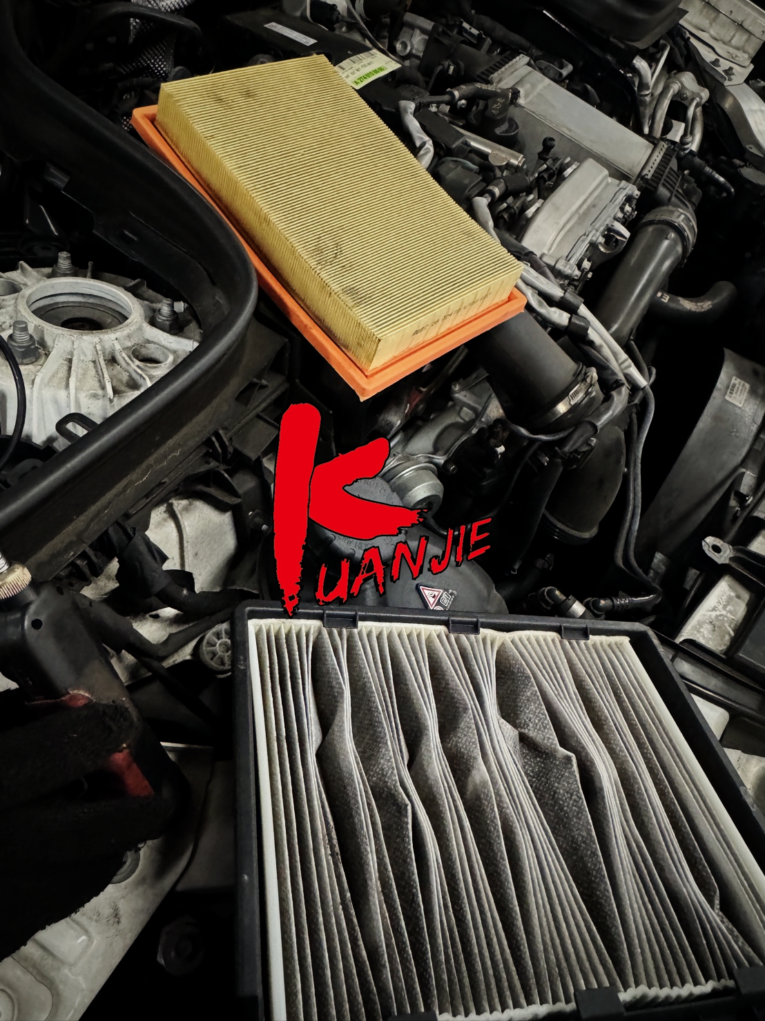 BENZ GLC220 M274 X254 車主為了讓家人有良好的空氣品質,更換冷氣濾心,愛車長期使用會產生油泥使用GAT油泥清洗劑幫油到清洗讓潤滑更順暢,